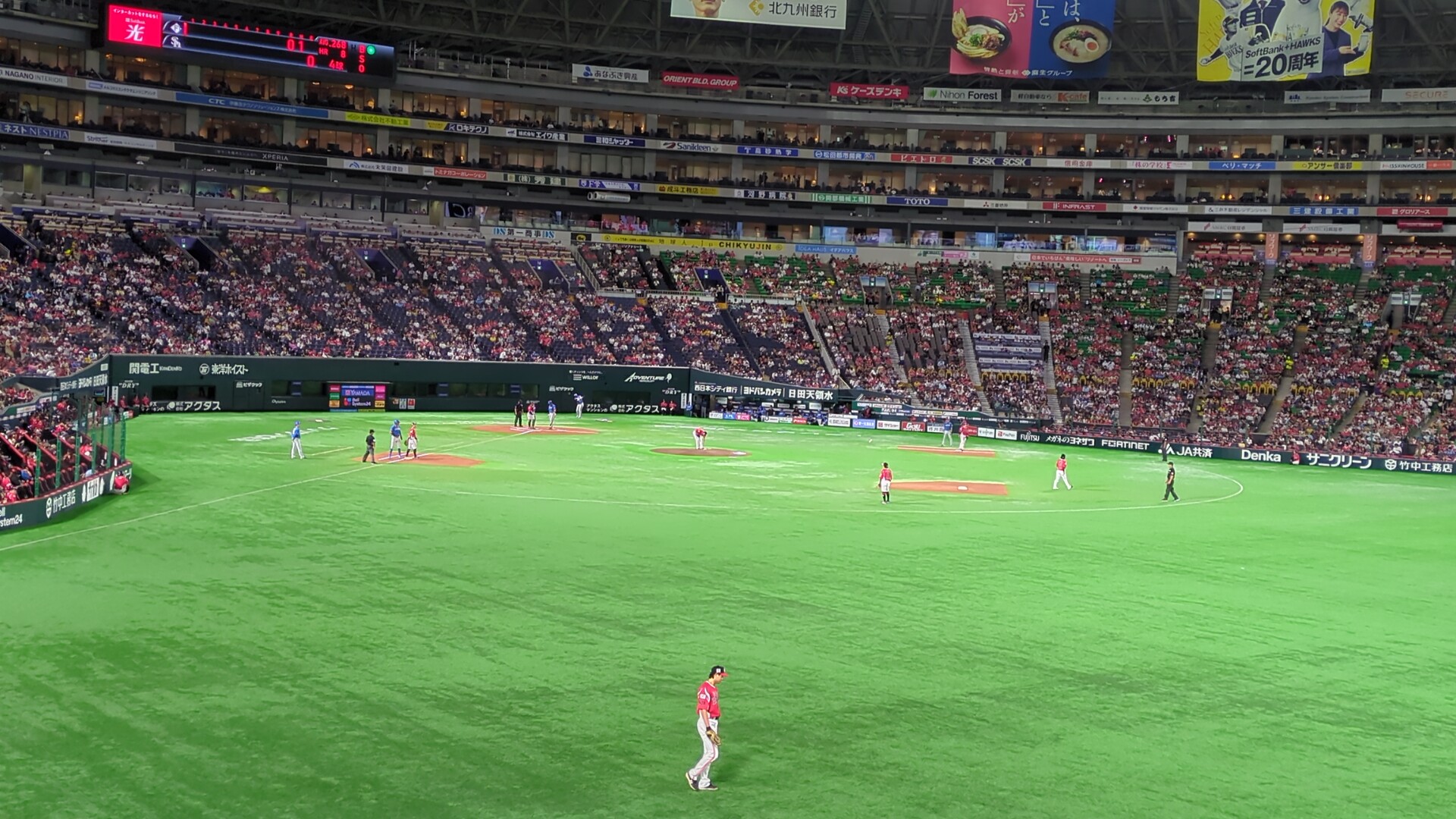 そうそう、この日のホークス・ファンは赤を基調にしたユニホーム姿で、カープっていうよりもラグビー日本代表チックなものでした。試合で選手も同じユニを着ており、この時期はコレで優勝まで走り切るのかな。