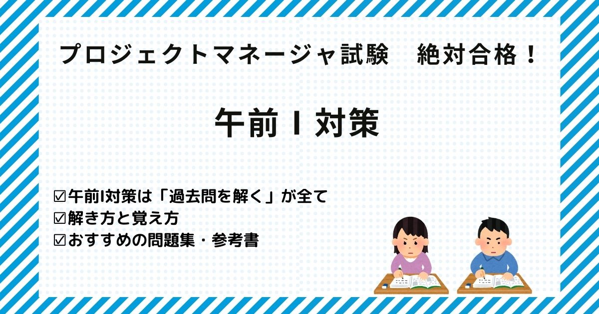 プロジェクトマネージャ試験、午前Ⅰ問題から学習方法を見ていきましょう。ここはサクッと足切りラインのクリアを目指して。費用対効果を考えて学習していきましょう。