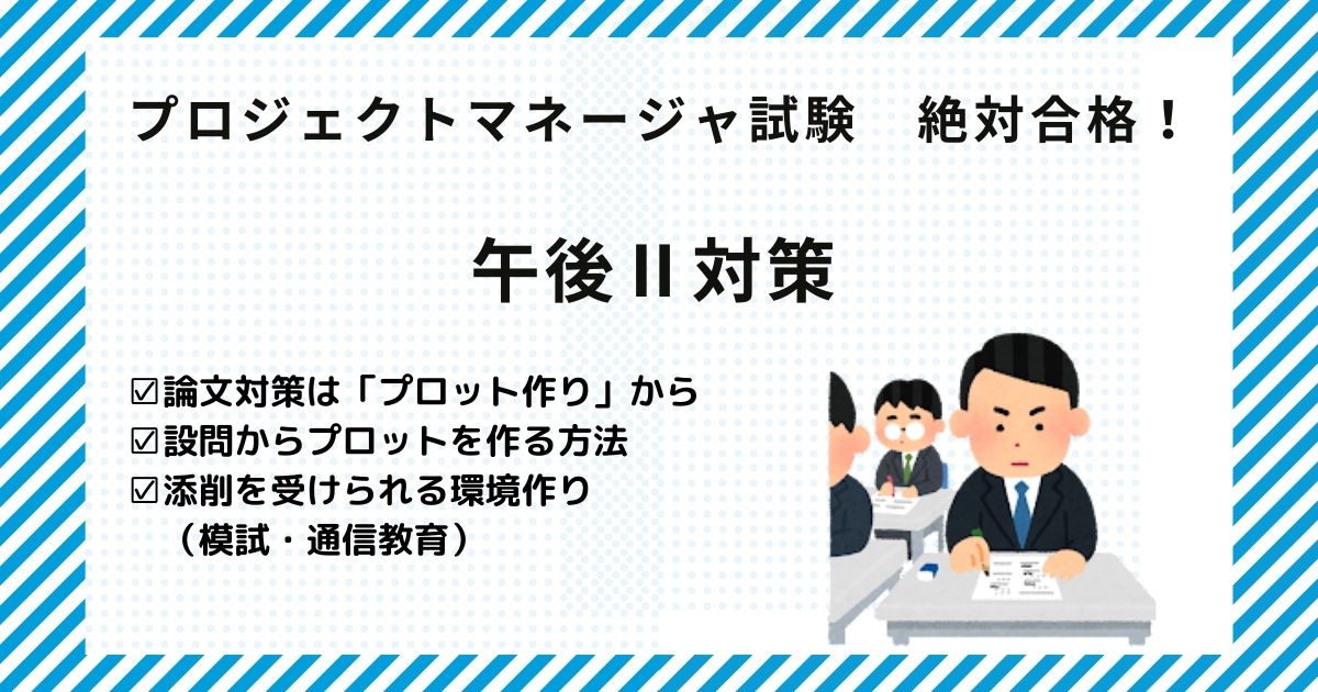 プロジェクトマネージャ試験、午後Ⅱ問題の学習方法です。午後Ⅱと言えば論文。論文対策のキモをしっかり押さえましょう。
